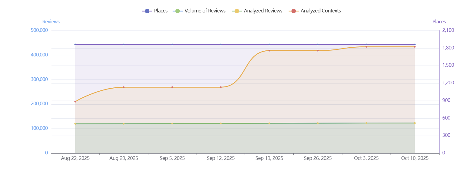 Upward trend (↑) “The steady rise in review activity suggests growing visitor engagement and continued interest in existing locations.”